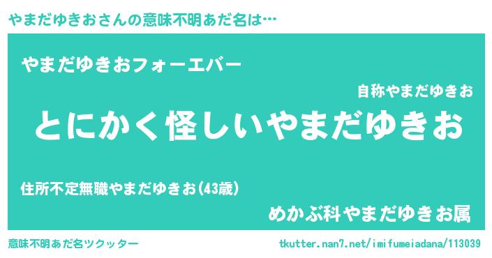 | ポケモン風あだ名 | 『ヒヤマダユキオ』『メロヤッマ』 |