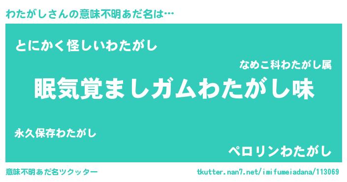 | 男性向けラノベタイトル風あだ名 | 『ノーゲーム・ノーワタガシ』 |
