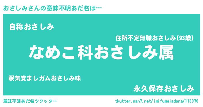 | 料理風あだ名 | 『おさしみごはん』 |
