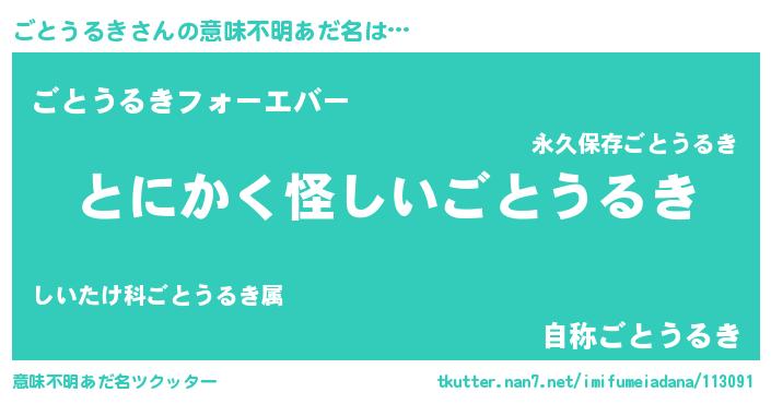 | 女子向けラノベタイトル風あだ名 | 『ごとうるきの卵を拾いまして』 |