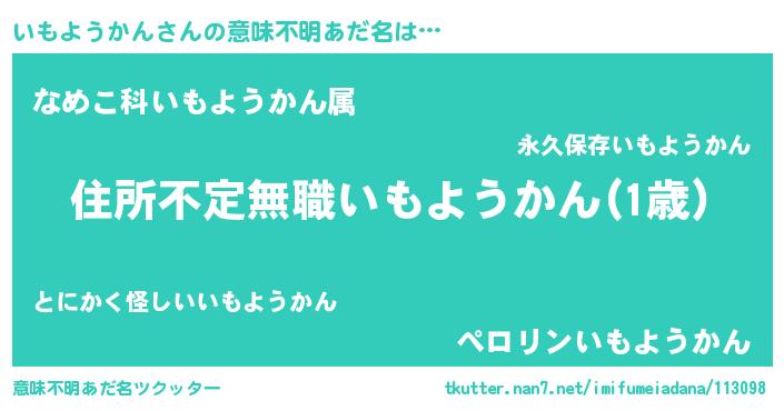 | 男性向けラノベタイトル風あだ名 | 『魔弾の王といもようかん』 |