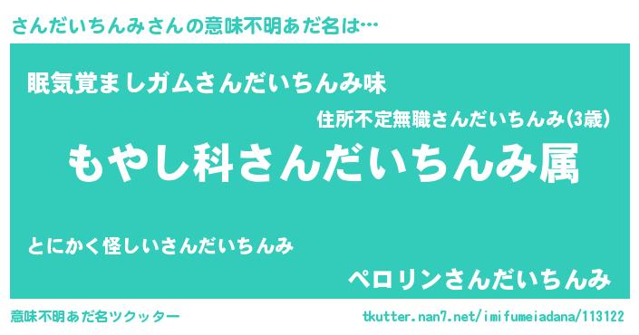 | ヒーロー風カッコイイあだ名 | 『慈愛の使者さんだいちんみ』 |