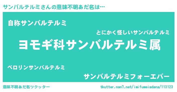 | ヒーロー風カッコイイあだ名 | 『究極戦士サンバルテルミ』 |