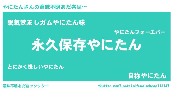 | 男性向けラノベタイトル風あだ名 | 『やにたんという概念が存在しない退屈な世界 』 |