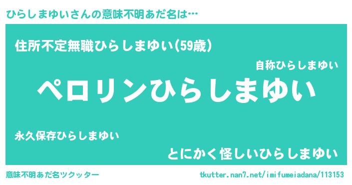| 欧米人風あだ名 | 『マイケルひらしまゆい』 |