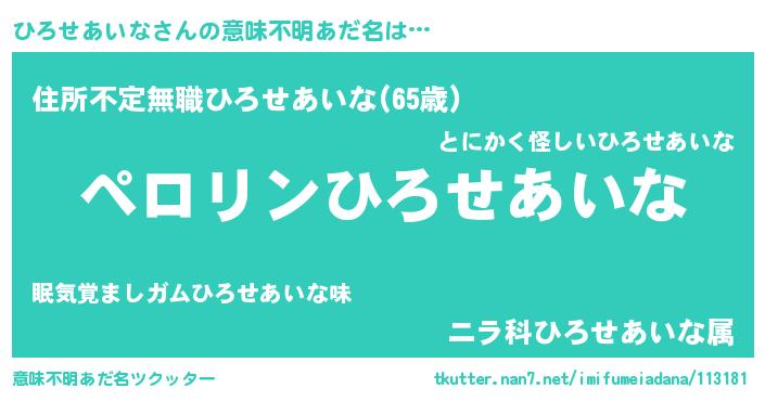 | 胡散臭い通販商品みたいなあだ名 | 『必ず成功する霊験あらたかなお札…その名も「ひろせあいな」』 |
