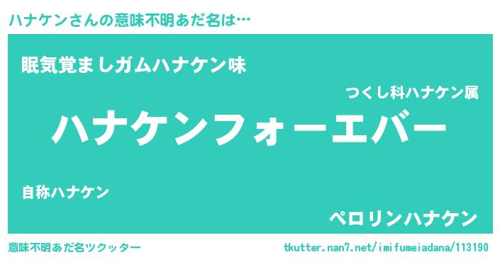 | ファンタジー風あだ名 | 『エターナルハナケンー』『クインハット』 |