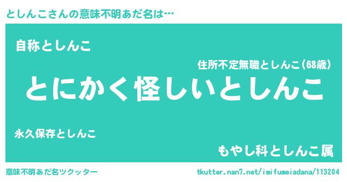 | 女子向けラノベタイトル風あだ名 | 『としんこの卵を拾いまして』 |