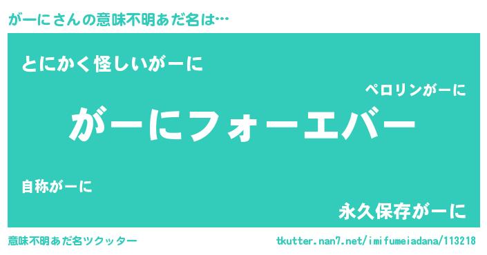 | 欧米人風あだ名 | 『がーにクリステル』『ウサインがーに』 |