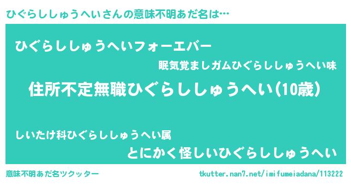 | 胡散臭い通販商品みたいなあだ名 | 『世界中を虜にした100年もののヴィンテージワイン…その名も「ひぐらししゅうへい」』 |