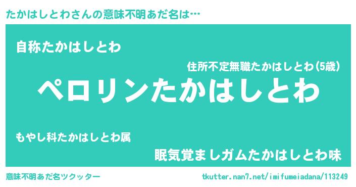 | 胡散臭い通販商品みたいなあだ名 | 『必ず成功する霊験あらたかなお札…その名も「たかはしとわ」』 |