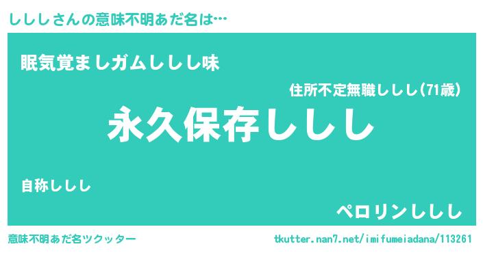 | ヘコむあだ名 | 『ししし(笑)』『ししにー』 |