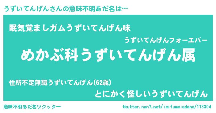 | 男性向けラノベタイトル風あだ名 | 『はたらくうずいてんげんさま!』 |