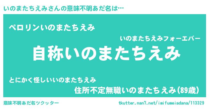| 男性向けラノベタイトル風あだ名 | 『Re:いのまたちえみから始める異世界生活』 |
