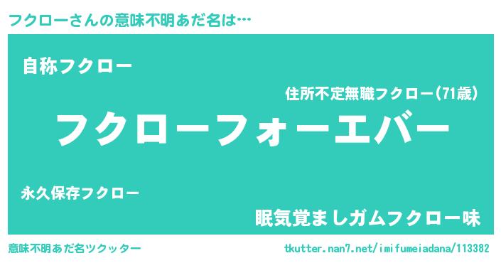 | 男性向けラノベタイトル風あだ名 | 『やはりフクローの青春ラブコメはまちがっている 』 |