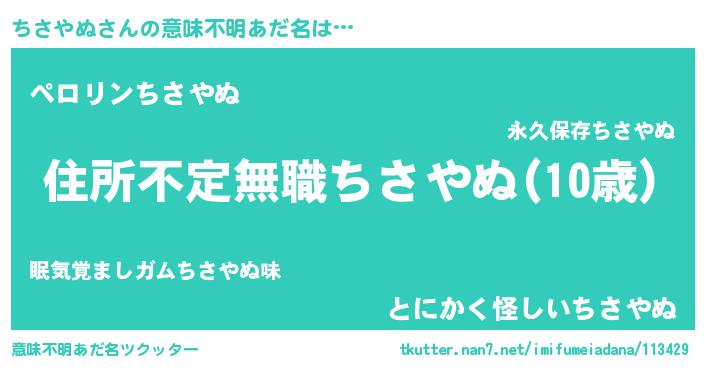 | 男性向けラノベタイトル風あだ名 | 『この素晴らしい世界にちさやぬを!』 |