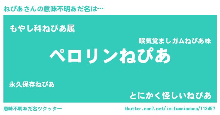 | 欧米人風あだ名 | 『マイケルねぴあ』『トリンドルねぴあ』 |