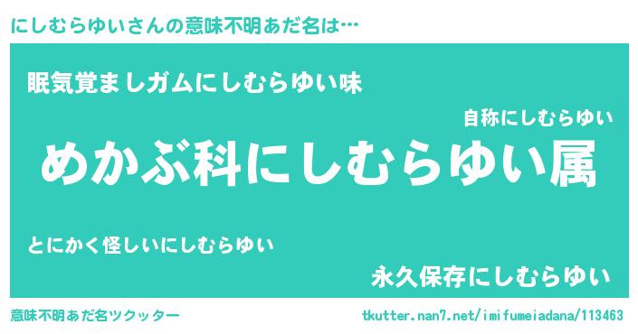 | ヘコむあだ名 | 『にしむらゆい(笑)』『にしっ子』 |