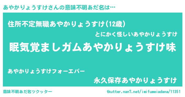 | 男性向けラノベタイトル風あだ名 | 『うちのあやかりょうすけが世界を掌握している!』 |