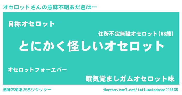 | ポケモン風あだ名 | 『ヒオセロット』『オセセウス』 |