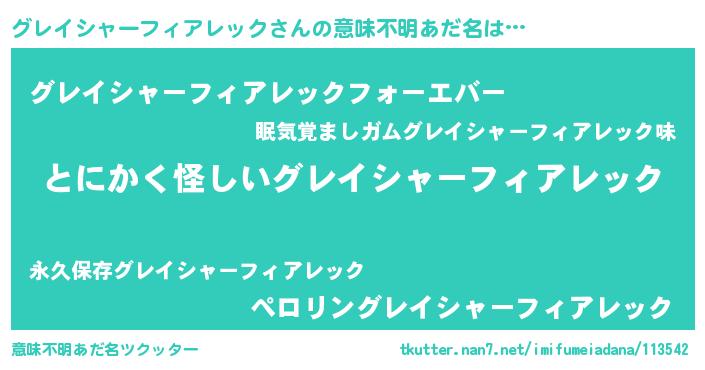 | 欧米人風あだ名 | 『ウサイングレイシャーフィアレック』 |