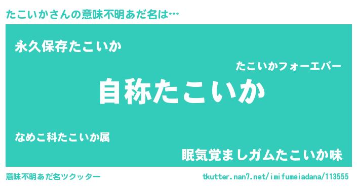 | 男性向けラノベタイトル風あだ名 | 『Re:たこいかから始める異世界生活』 |