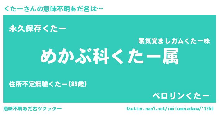 | 料理風あだ名 | 『くたーごはん』『満腹くたーマフィン』 |