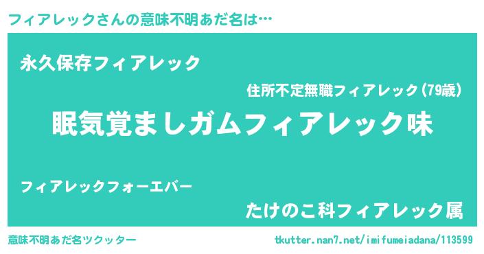 | ヘコむあだ名 | 『フィアレック(笑)』『つくし』 |