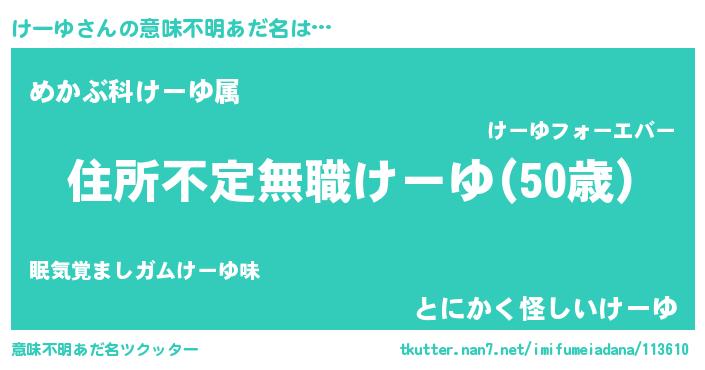 | 男性向けラノベタイトル風あだ名 | 『魔弾の王とけーゆ』 |