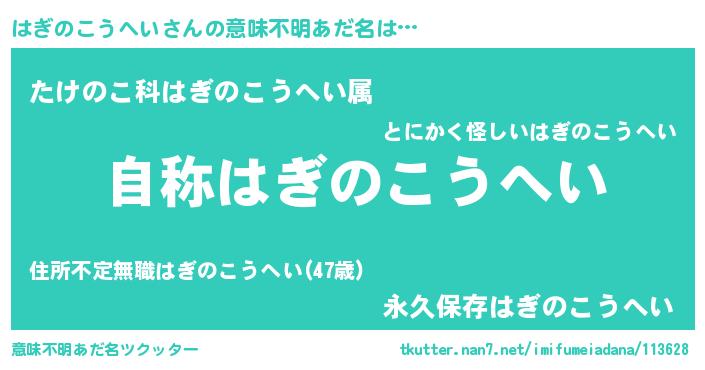 | 女子向けラノベタイトル風あだ名 | 『はぎのこうへいアンティーク』 |