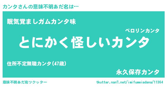 | 男性向けラノベタイトル風あだ名 | 『カンタの嫁は女の子じゃないと思った?』 |