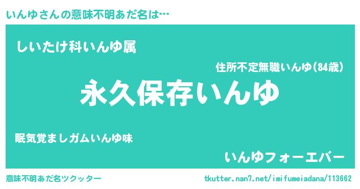 | 男性向けラノベタイトル風あだ名 | 『いんゆという概念が存在しない退屈な世界 』 |