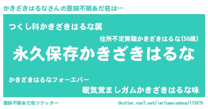 | 男性向けラノベタイトル風あだ名 | 『かきざきはるなという概念が存在しない退屈な世界 』 |