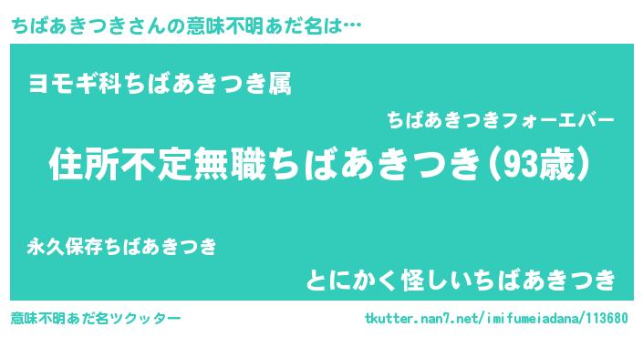| 料理風あだ名 | 『ちばあきつきのカルパッチョ風』 |