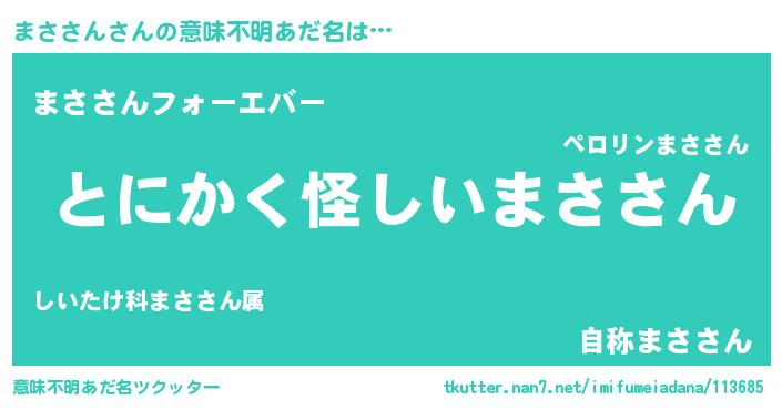 | 男性向けラノベタイトル風あだ名 | 『ダンジョンにまささんを求めるのは間違っているだろうか』 |