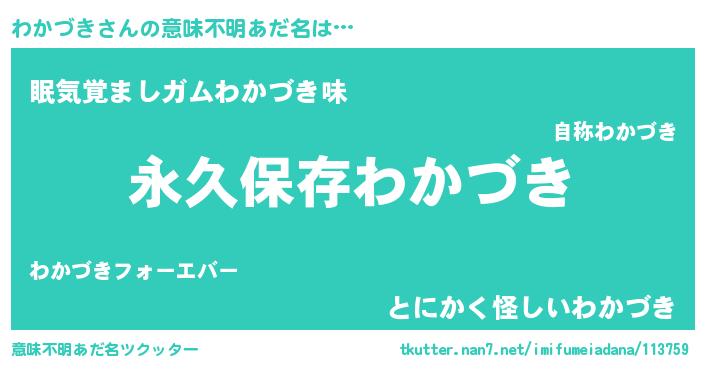 | 男性向けラノベタイトル風あだ名 | 『わかづきという概念が存在しない退屈な世界 』 |