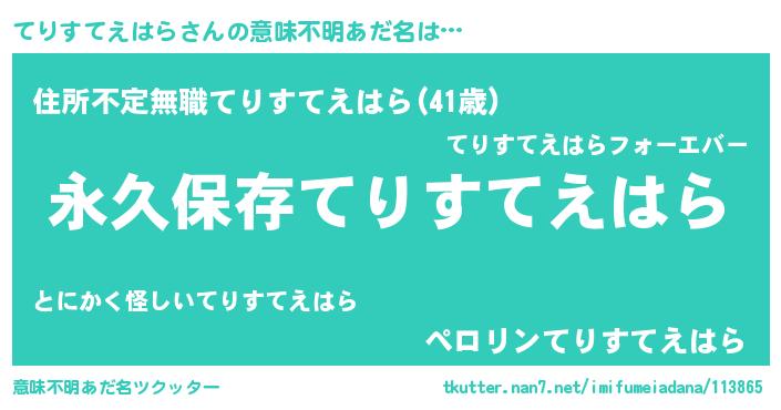 | 男性向けラノベタイトル風あだ名 | 『てりすてえはらという概念が存在しない退屈な世界 』 |
