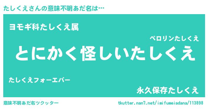 | ポケモン風あだ名 | 『タシゴンZ』『ヒタシクエ』 |