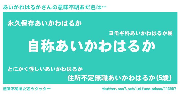 | 胡散臭い通販商品みたいなあだ名 | 『芸能人もオススメする高麗人参…その名も「あいかわはるか」』 |