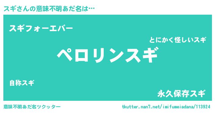 | ポケモン風あだ名 | 『スギチュウ』『スギダネ』『ヒスギ』 |