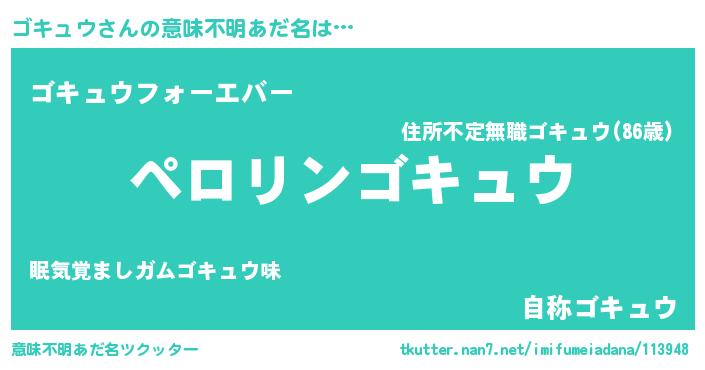 | ヒーロー風カッコイイあだ名 | 『スーパーゴキュウ』『究極戦士ゴキュウ』 |