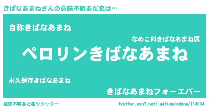 | 胡散臭い通販商品みたいなあだ名 | 『必ず成功する霊験あらたかなお札…その名も「きばなあまね」』 |