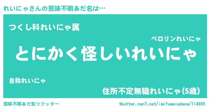 | 女子向けラノベタイトル風あだ名 | 『れいにゃは平凡を望む』 |