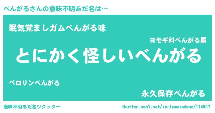 | 胡散臭い通販商品みたいなあだ名 | 『全米が絶賛したサプリメント…その名も「べんがる」』 |