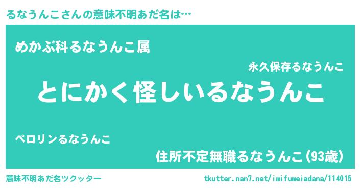 | 女子向けラノベタイトル風あだ名 | 『るなうんこは平凡を望む』 |