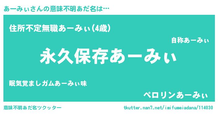 | 男性向けラノベタイトル風あだ名 | 『あーみぃという概念が存在しない退屈な世界 』 |