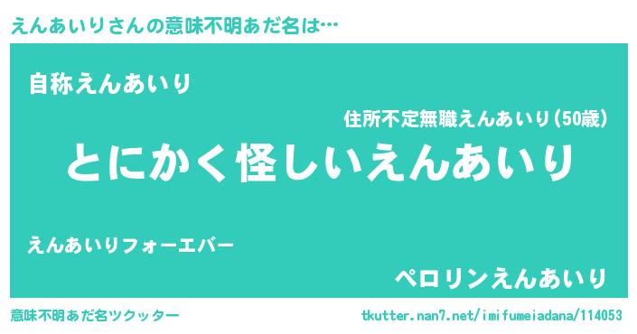 | 男性向けラノベタイトル風あだ名 | 『えんあいりの嫁は女の子じゃないと思った?』 |