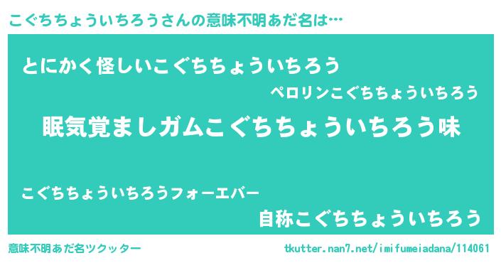 | 男性向けラノベタイトル風あだ名 | 『緋弾のコグチチョウイチロウ』 |