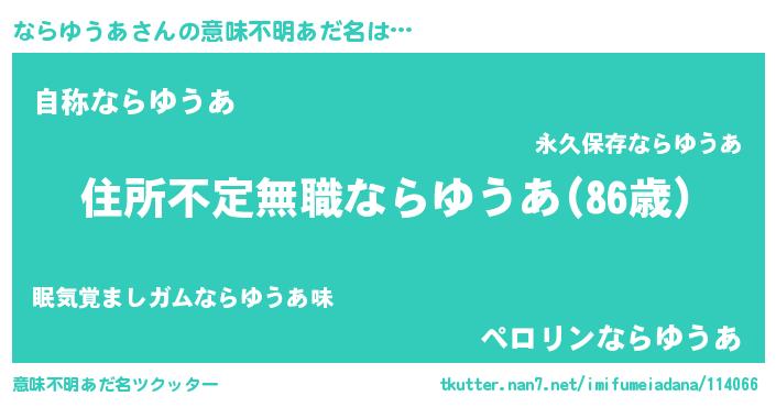 | 胡散臭い通販商品みたいなあだ名 | 『あなたにだけ特別に提供する世界で10本だけ現存している希少なブランデー…その名も「ならゆうあ」』 |