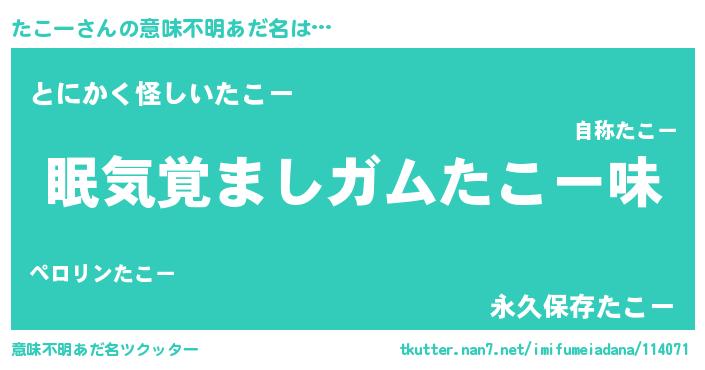 | ヒーロー風カッコイイあだ名 | 『友情の使者たこー』『幻影騎士タコ』 |